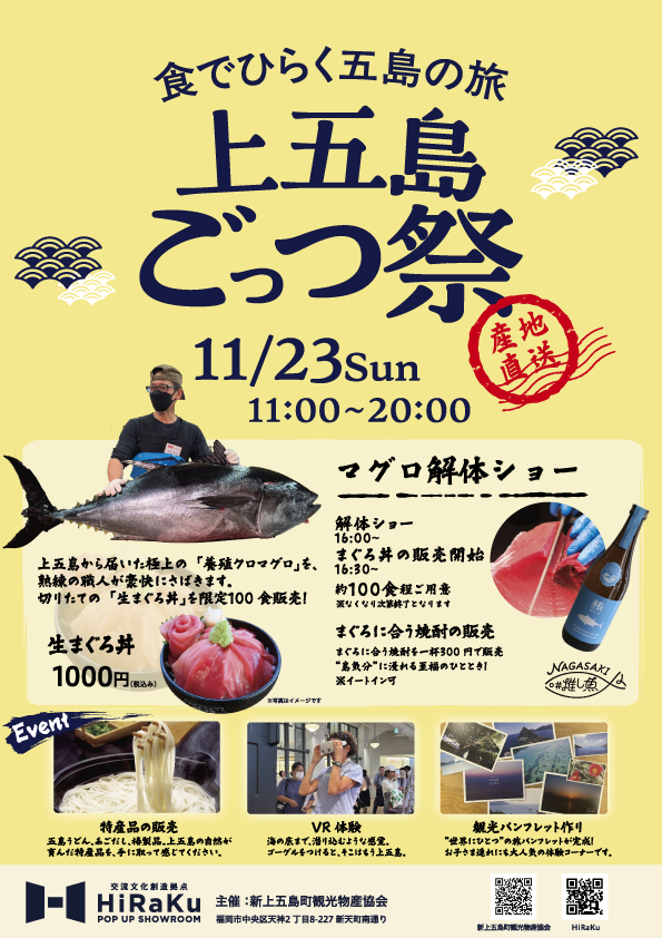 11月23日(日)の1日限定で、新上五島町観光物産協会主催のイベント「上五島ごっつ祭」を開催いたします。